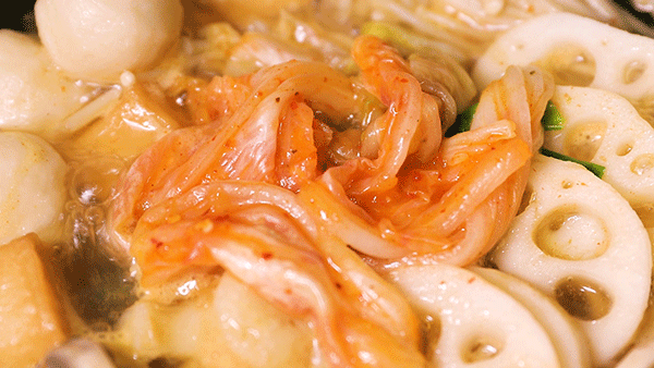 切碎的辣白菜加入面粉调成面糊,放锅中烙熟,就是一张可做主食可做点心的泡菜饼。被煎得微微焦的辣白菜,被热力更加激发了香味,不留神整张饼就已经下肚。