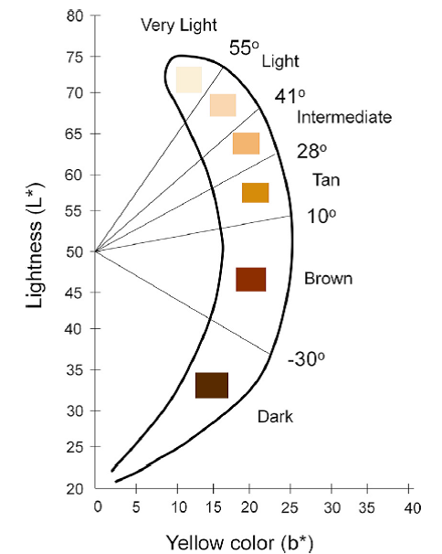 固有肤色是指由遗传决定的未受日光照射和其他因素影响的健康皮肤色, 也称为基础皮肤色(Basic Skin Color),下面是常见的一些肤色。