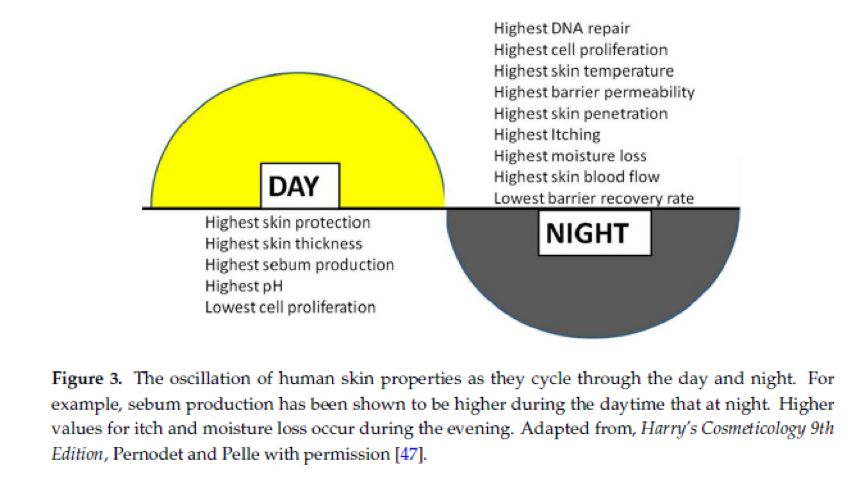 Mary S. Matsui , Edward Pelle, Kelly Dong, et al.Biological Rhythms in the Skin. Int. J. Mol. Sci. 2016, 17, 801; doi:10.3390/ijms17060801.