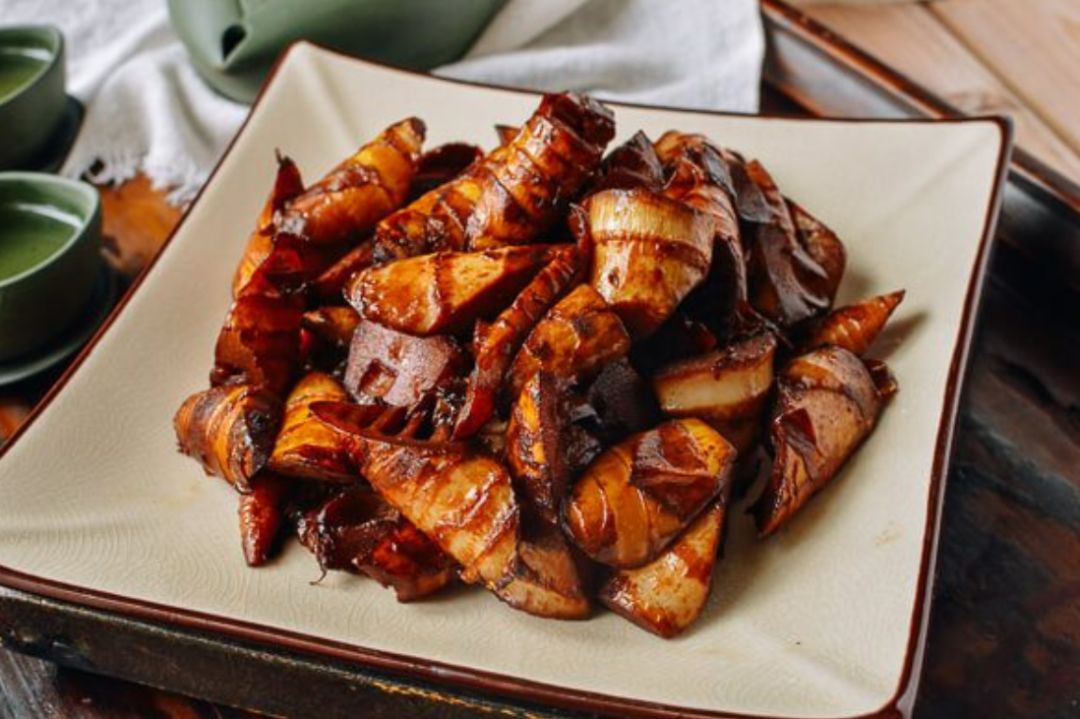 好在,空运以及低温已经尽可能帮我们把春笋等待的时间变短了,尽管不似刚出土的鲜嫩,但也不失为春日的头道美味了。春笋,我最爱的做法是油焖。笋块清洗干净,要先进热水里滚一圈,把涩又剌嘴的草酸焯掉,接着进滚油里小火煎得边缘微微地发着金褐色的光。接着便要加些生抽和糖,让美拉德反应为笋披上一层金褐色的外衣,然后在它的鲜甜之上添上馥郁香气。
