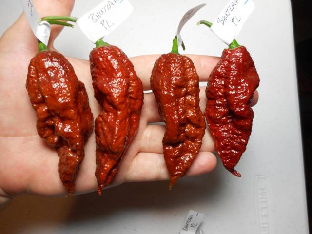 前任吉尼斯世界纪录最辣的辣椒。它是黄灯笼辣椒的一种,是特立尼达莫鲁加毒蝎的一个衍生种,它的辣度能达到146万SHU。