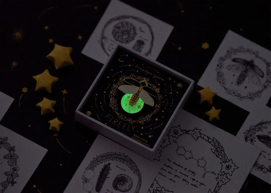 胸针在黑暗的地方,也会发出绿色的光亮,就如萤火的微光。