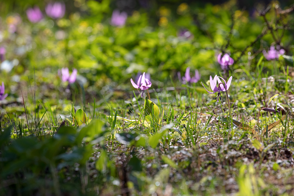 猪牙花属在我国境内有两种,一种是分布于新疆的新疆猪牙花Erythronium sibiricum,以及分布在吉林和辽宁,我在4月末所遇见的猪牙花Erythronium japonicum,它们在我国西北的天山山脉,在东部的长白山和小兴安岭,都在冰雪消融之后,绽放成遍野的粉色花海。