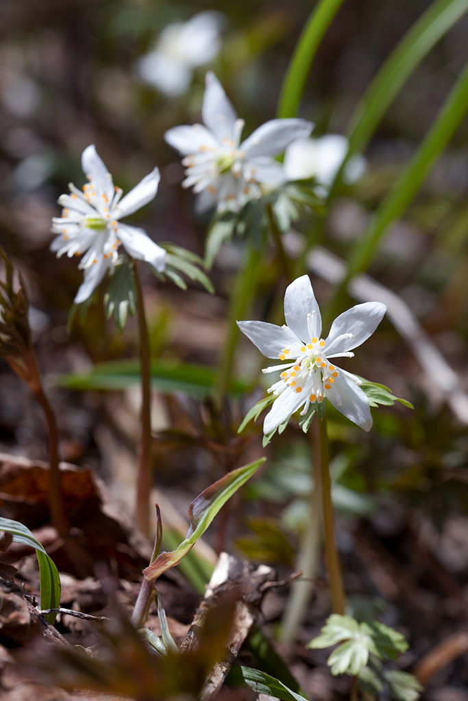 猪牙花也并不孤单,它身边是毛茛科的银莲花属 Anemone、菟葵属 Eranthis、侧金盏花属 Adonis,罂粟科的紫堇属 Corydalis、血根草属 Sanguinaria,小檗科的牡丹草属 Gymnospermium、鲜黄连属 Plagiorhegma,藜芦科的延龄草属 Trillium等等,这些北半球温带落叶阔叶林中的早春短命野花,彼此亲缘关系很远,却不约而同地发展出了相似的早春开花结实、夏秋季枯萎、种子有油状体吸引蚂蚁传播的性状或生存策略,这就是趋同演化而形成的“林下植物综合征(woodland plants syndrome)”。