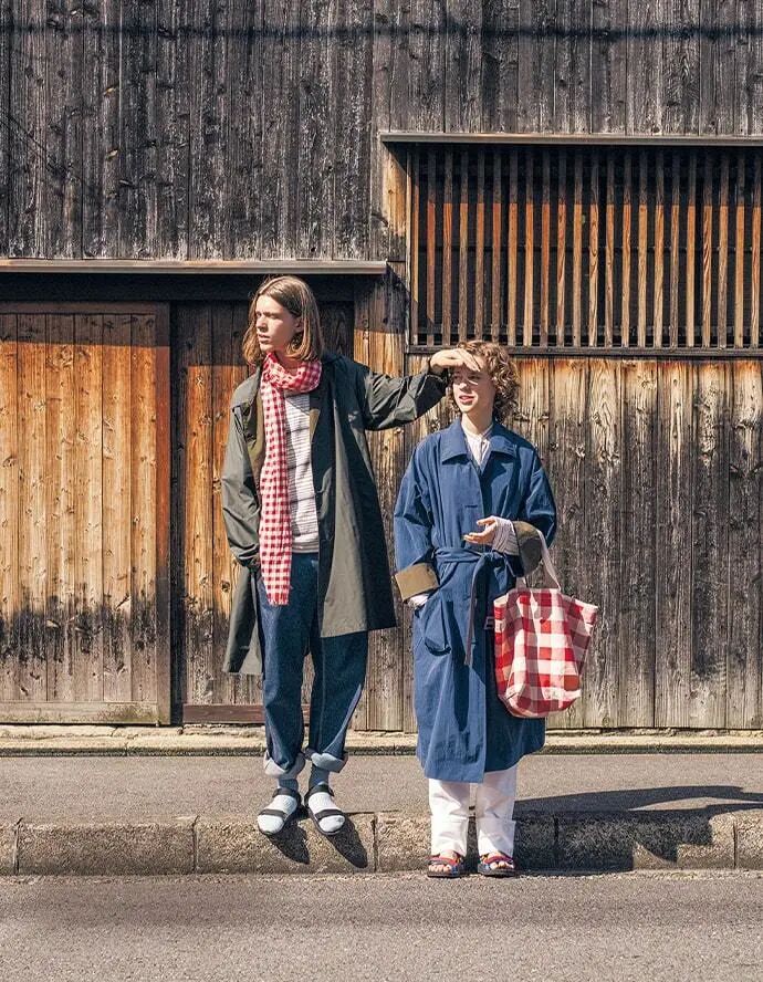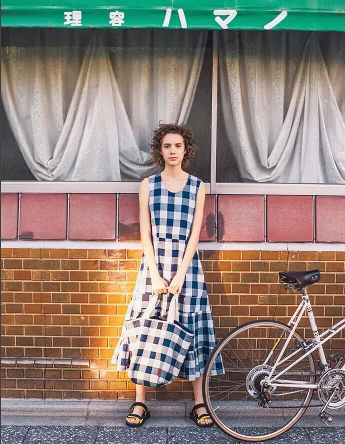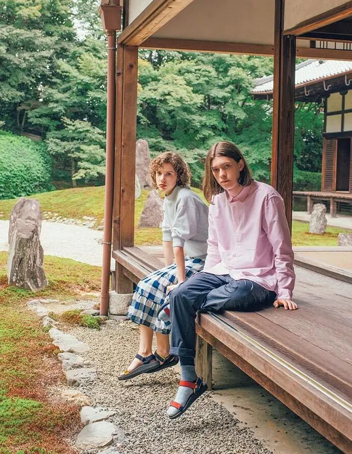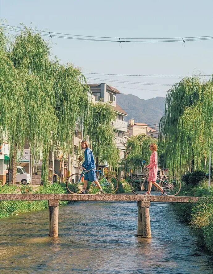 杂志拍摄了一对穿着合作款的男女模特在京都骑自行车的经历。