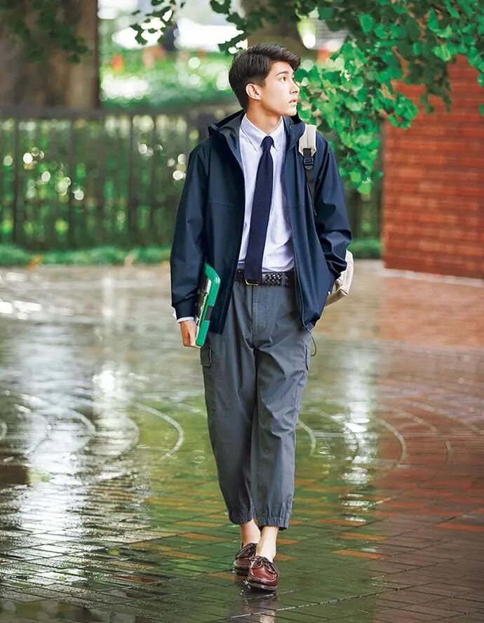 比如这两套加入了防水外套的穿搭,说不定就能让你出门少带把雨伞。即使和西装衬衫搭配,也非常合适。