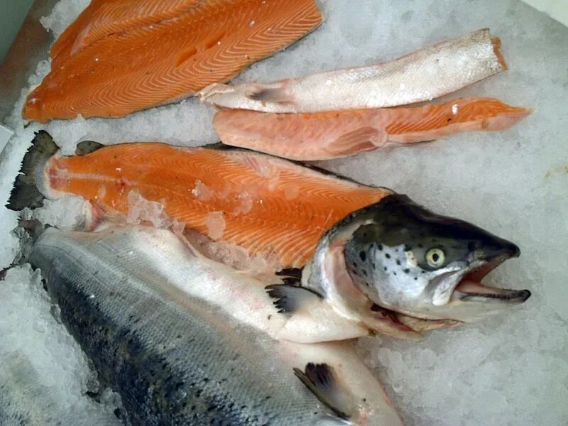 市场上偶尔也可以见到整条销售的大西洋鲑。图片:Garitzko / Wikimedia