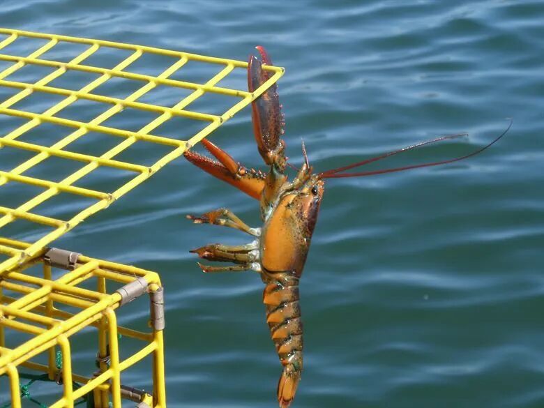 一只夹在捕虾笼上的波龙。图片:Justin Oakes / hanscom.af.mil