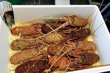 网笼捕获的岩龙虾经分级、暂养后,储存在填充木屑(用来保湿)的包装箱内,被及时空运到世界各地,送到大洋彼岸消费者手中时依旧可以保持鲜活。