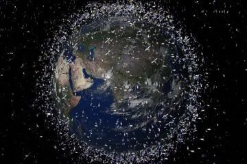 太空垃圾的跟踪想象图,看上去仿佛地球有了头皮屑。图片:David Shikomba & T. Haiduwa / Wikimedia Commons