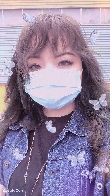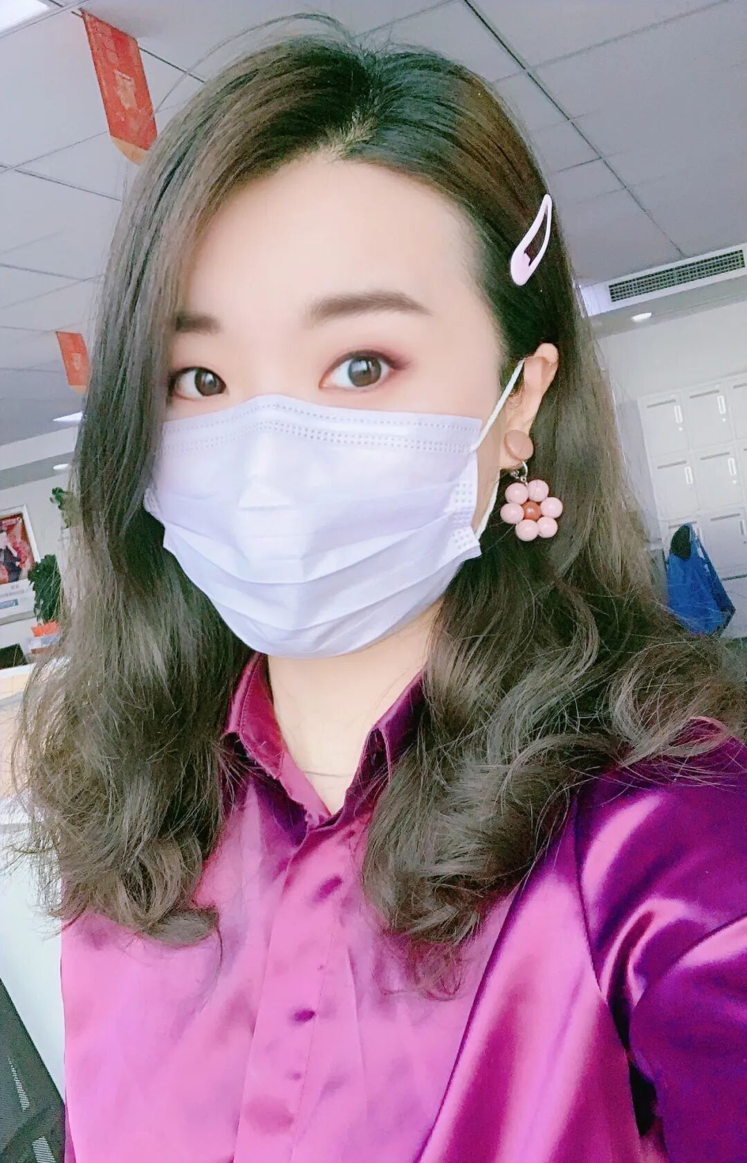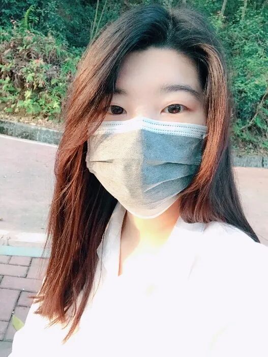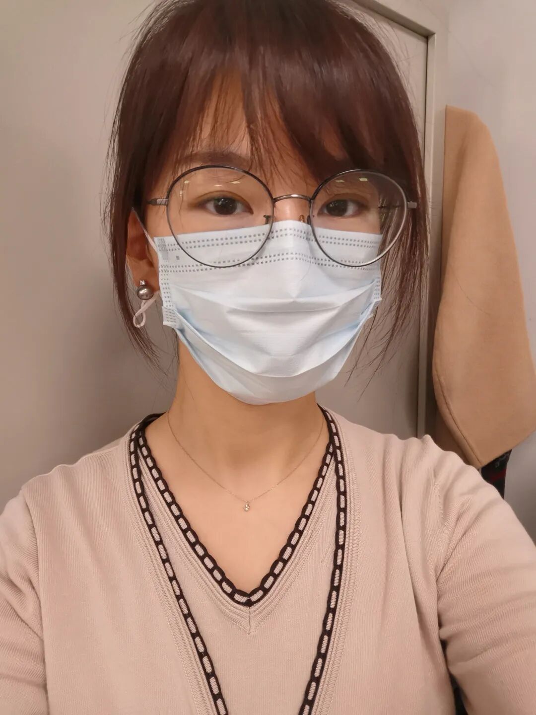 因为疫情不能理发刘海长长了,刚好拨来挡两侧脸颊;妆就算了,反正脸上大部分地方都遮住了;耳钉耳环可以戴喜欢的,以不长到会挂口罩为宜;戴口罩可以遮圆脸太棒!