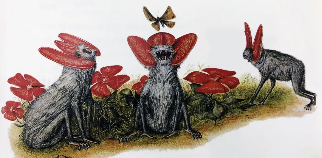 生活在太平洋的一个群岛上的红花蝠也有同样的能力——它们的耳朵和鼻子长成了花瓣模样,而且嘴巴周围的一圈腺体还能分泌香甜的气味引诱昆虫。