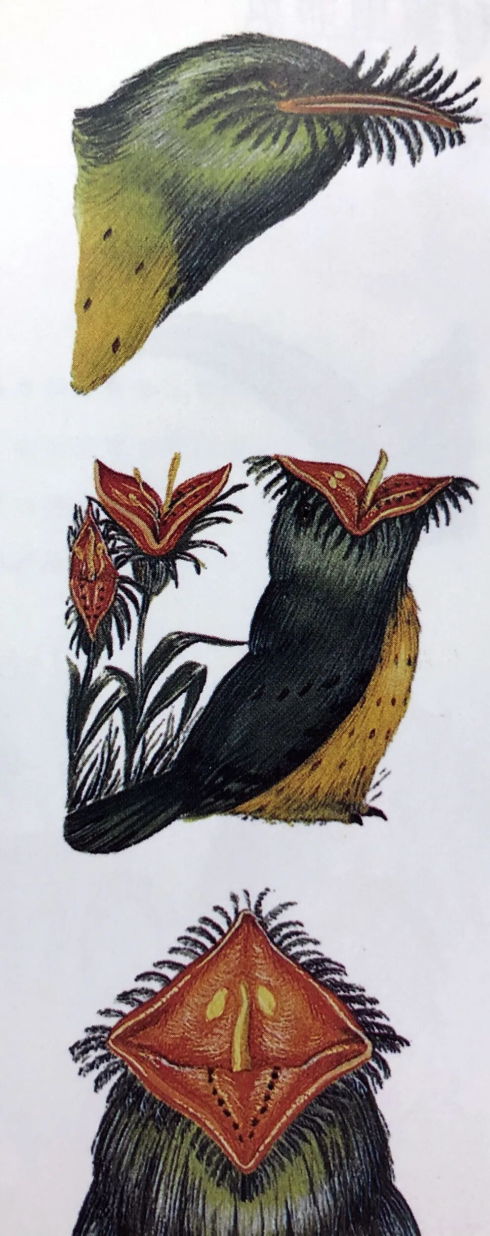 南美洲有一种花面鸟,它们平时坐在草原上,张开嘴巴,就像绽放的花朵。一只只昆虫被这精巧的形态欺骗,沦为盘中餐。