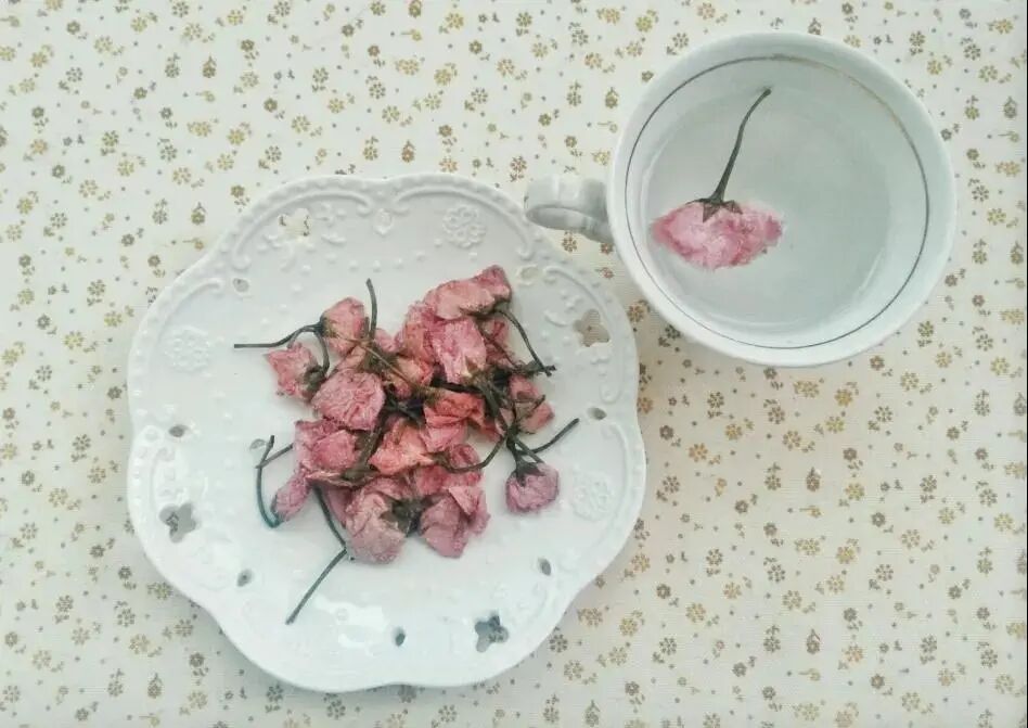 腌制是最为常见,也是大家最容易吃到的樱花制品,其中最著名的还属盐渍樱花,通常大家买到的都是八重樱盐渍而成的,高浓度的盐基本上会让樱花除了咸味再尝不到其他味道,而且腌制过程中本就清淡的香气就随之散发。
