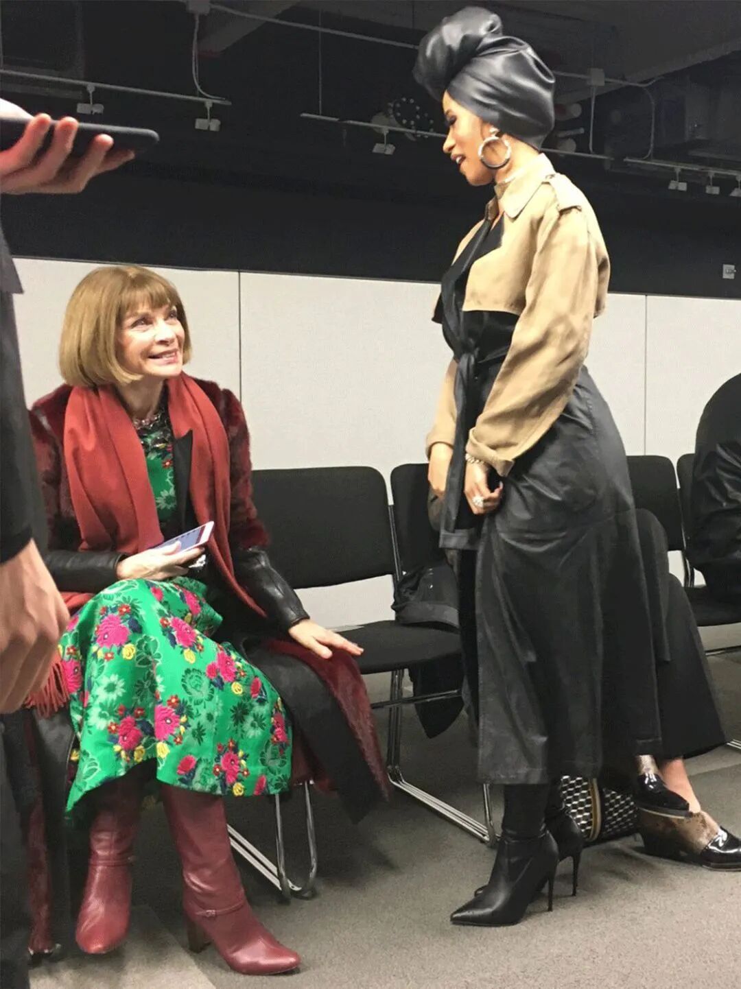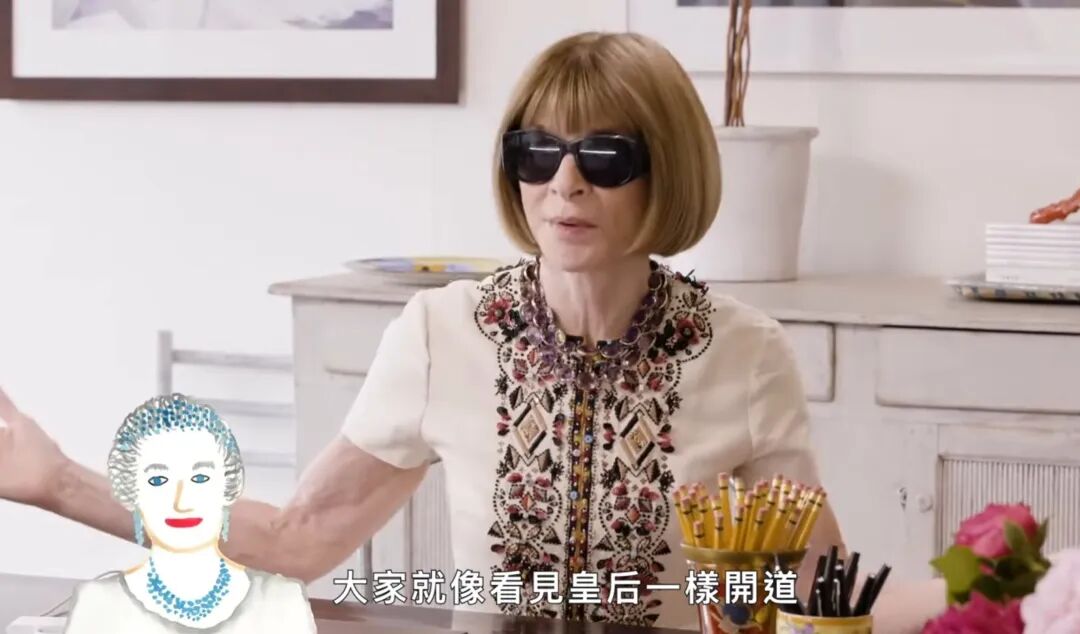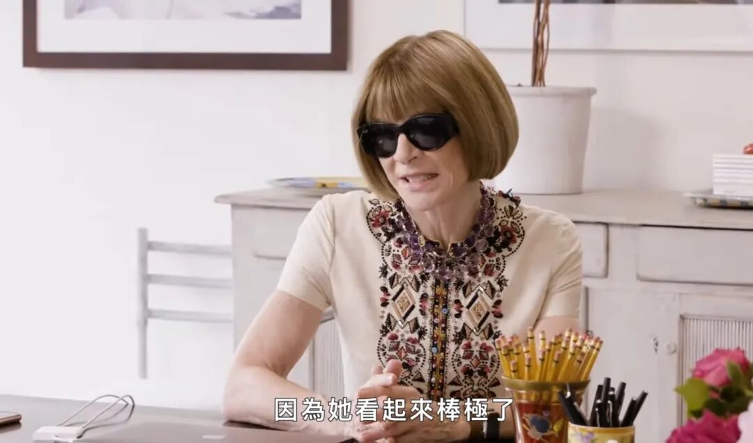 就连出名冷酷的时尚女魔头Anna Wintour都被卡姐乐观豁达的人格魅力所征服,在秀场前排献出难得的笑容。