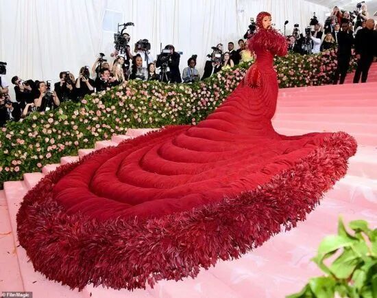 Anna说的就是这套由Thom Browne为卡姐定制的,征战19年met gala的“毛血旺山鸡”礼裙。亮相时宛如女皇出征,全场都要为她让道。