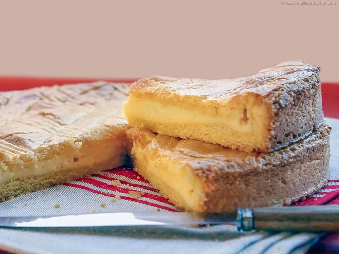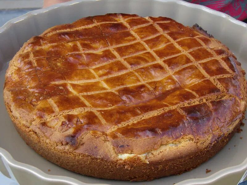 巴斯克面朝坎特伯雷克海,背靠庇里牛斯山,位置上的偏远孤立造就了巴斯克人与其它欧洲人有些差异的相貌、自成体系的文化以及与众不同的语言。勤勉的巴斯克人(一山之隔的法国则以散漫著称)自古从事农、牧、渔业,丰饶的物产、新鲜的食材不断被端上餐桌,美味的传统也由此应运而生。巴斯克背靠庇里牛斯山 | onfootholidays.co.uk不过,它真正名扬国际,还是要从那个改写了整个美食圈世界格局的法国轮胎厂说起。随着1900年《米其林指南》的诞生和在全球范围的流传,法餐在世界范围逐渐普及开来。到了50年代,电影界迎来新浪潮,文学界兴起新小说,而料理界也开启了新法餐运动。再到70年代,新式烹调的浪潮翻过庇里牛斯山,在年轻巴斯克厨师们的反思与重塑下,新巴斯克美食诞生了,传统小吃Pintxos/Tapas就是在这个时期经过改良成为西班牙的代表食物享誉全球。传统小吃Pintxos | whatthefood.menu巴斯克地区丰富多样的食材赋予厨师们取之不尽的灵感,复杂多变、大胆前卫成为巴斯克料理的标志,创新的味道结合传统手法让米其林的评审员们也给出了很高的评价,在今年最新的米其林榜单上,巴斯克地区一共上榜了23家米其林星级餐厅。而早在2012年,海滨小城圣塞巴斯蒂安(San Sebastián)就被英国消费者组织Which?评选为世界美食之都,当时西班牙半数的米其林三星餐厅都集中在这方圆60平方公里(和北京市西城区差不多大小)、人口不足20万的小城之中,是人均及单位面积米其林星级最多的城市。美食之都圣塞巴斯蒂安 | sansebastian-connectingtalent.com与现在流行的所谓巴斯克芝士蛋糕不同,在巴斯克地区,巴斯克蛋糕其实另有其糕。当地的巴斯克蛋糕发源于17世纪中期的北巴斯克,在巴斯克语中它被称为Biskotxa或 Bixkotxa. 巴斯克蛋糕长这样 | gateau-basque.eu巴斯克蛋糕的做法介于蛋糕和派之间,外观有点类似于国王饼,不过国王饼是起酥皮而巴斯克蛋糕是杏仁酥皮,至于吃起来则和这两年国内糕饼屋推出的法式月饼有一定相似之处。国王饼是起酥皮 | 5ingredients15minutes.com最传统的巴斯克蛋糕做法只是单纯将面团一分为二,中间铺上酸樱桃或者黑莓果酱进行烤制。后来逐渐演化出多层夹心,馅料的种类也越来越丰富,比较经典的口味是杏仁奶油馅和酸樱桃果酱的搭配。杏仁奶油馅巴斯克蛋糕 | meilleurduchef.com而外形上,蛋糕入炉前会用刀叉在派皮上划出刻痕、刷上蛋液,烤制后会形成有标志性的纹路。就像国王饼的不同纹路象征着不同的意义(月桂纹代表胜利、太阳纹代表生命力等),正统的巴斯克蛋糕纹样是地域性标志——巴斯克十字,这种类似卍字的十字架图案的四瓣羽翼分别代表了火、大地、空气和水,当这四种元素围绕在一起则象征了永恒、爱与和平,也代表着巴斯克地区的四个代表性区域。有着巴斯克十字的巴斯克蛋糕 | turismovasco.com
