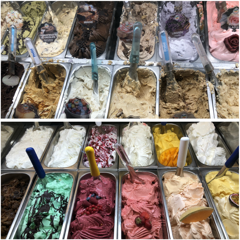 总之,意大利的阳光实在毒辣,地中海气候也着实闷热,好在街边的Gelato小店和咖啡馆一样多,便也给人以一次又一次顺理成章来一筒的理由。