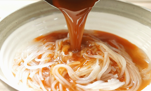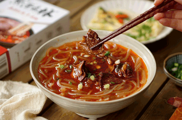 汤底直接决定了牛肉粉的味道是否醇厚。用了十几款天然香辛料,配合着大块新鲜牛腩肉,慢慢熬煮12小时,将原汤锁鲜包装,更好地保留了汤头原有的口味(市面上很多速食都是用的浓缩还原技术,风味免不了会打折)。喜欢吃肉的小伙伴一定会对泡面里那种干瘪无谓的“假肉”深表不满!所长真的有被这碗牛肉粉里的大块牛腩安慰到。鲜嫩多汁的牛腩肉,几乎入口即化。经过长时间熬煮,牛肉将汤汁的味道丝丝吸收入味,一咬,肉香汁香就溢满了口腔。肉块厚实,看着就赏心悦目,诚意十足。选用红薯粉与木薯粉制成的小粉条,高温熟化后真空保鲜处理。用开水很容易泡开,95℃以上的热水泡1分钟就是一碗成熟的粉丝了。