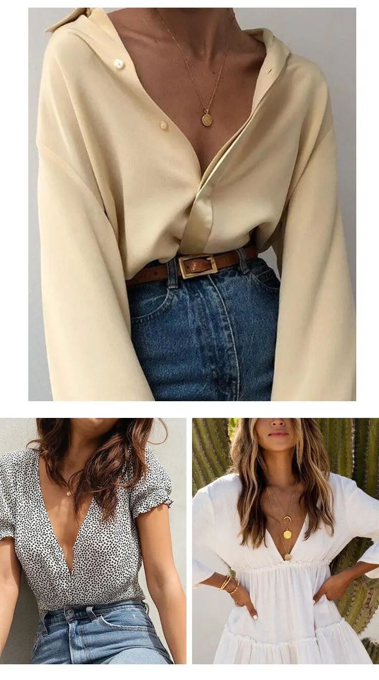 裙子、衬衫、短袖换着搭,hold住各种V字领,显瘦又显高。
