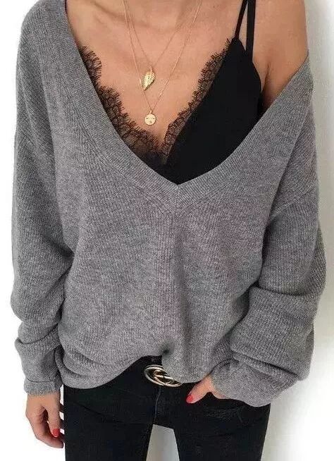 搭配宽松针织衫和一两条choker,小露香肩也不错,