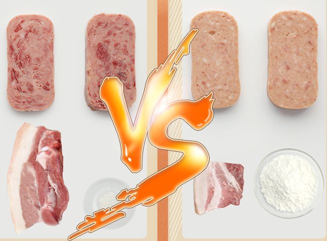 左为火腿猪肉,右为普通午餐肉