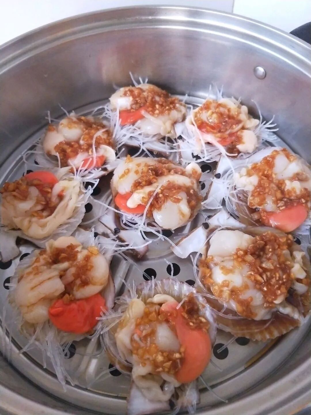 粉丝蒸虾夷扇贝。部分售卖虾夷扇贝粉丝的商家曾被爆出壳是虾夷扇贝的,肉却被偷梁换柱了。图片:再累不要忘了微笑 / 豆果美食