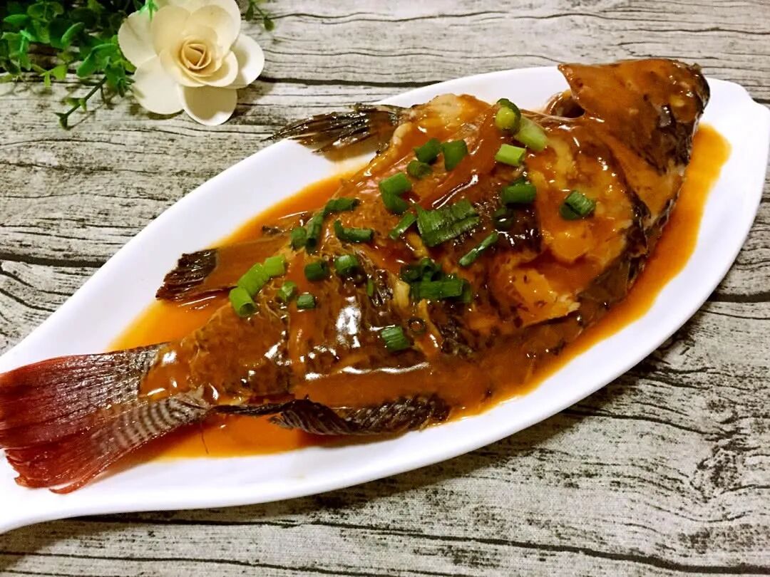 既然可以干烧大黄鱼,那不妨试试干烧美国红鱼。图片:彩海一叶舟 / 豆果美食