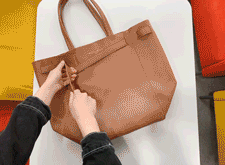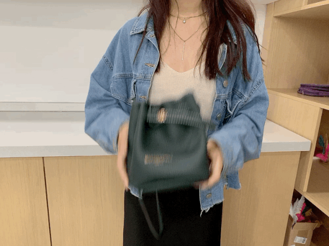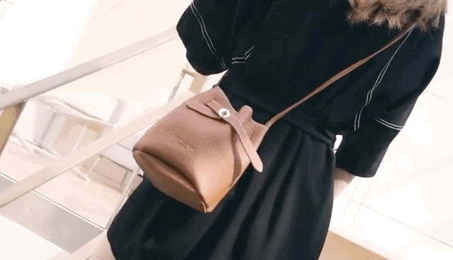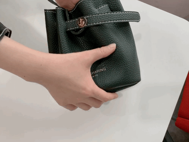 独特抽绳设计,松开时是饺子包,拉紧抽绳就变身水桶包!