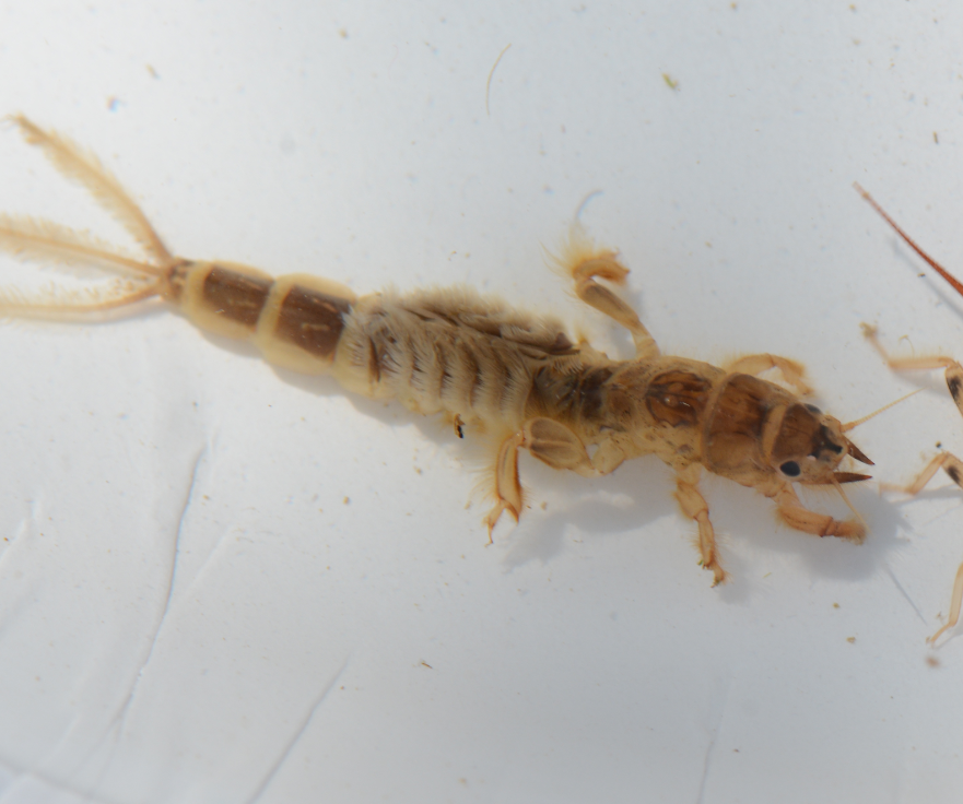 和蜉蝣共享水生栖息地的还有另一类昆虫——𫌀翅目的石蝇。由于石蝇和蜉蝣的稚虫比较相似,因此经常被混淆,两者的区别在于:蜉蝣稚虫有三根长长的尾须(成体不一定),而石蝇只有两根。那如果蜉蝣的尾须断了一根还能分吗?当然可以,蜉蝣的羽状鳃长在腹部,而石蝇的鳃长在胸部、靠近腿基部的位置。