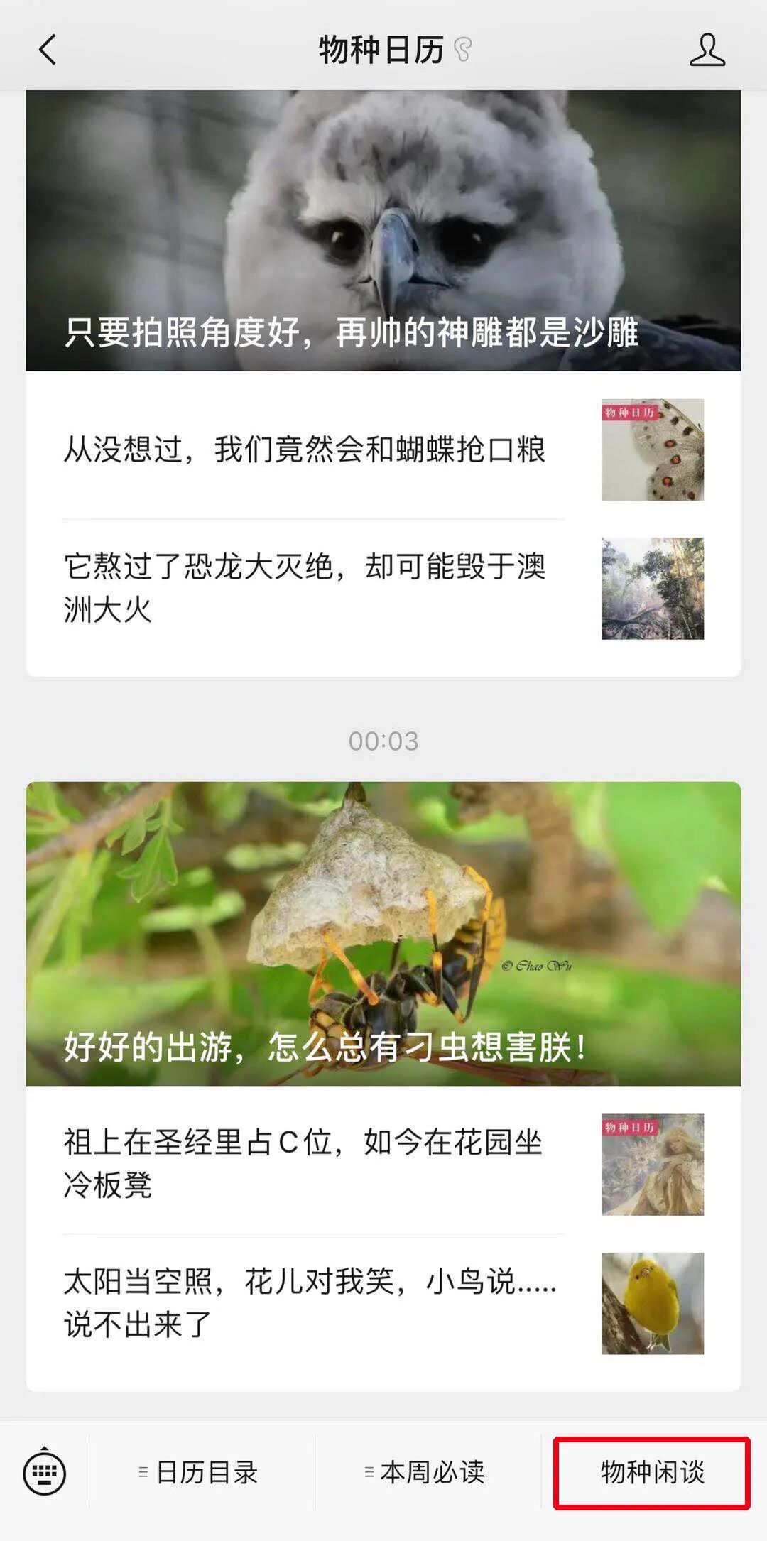 功能介绍 世界上的生物只有两种——已经出现在物种日历的,以及将要出现在物种日历的。这里既有萌点奇怪的『冷知识』,也有丰富『走心』的自然科普。每天一物种,带你看世界。