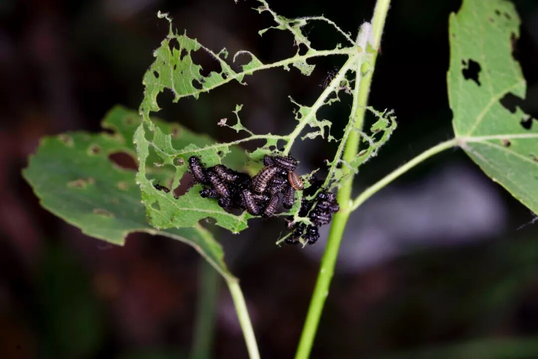 群集取食的叶甲幼虫。图片:翦翳翎