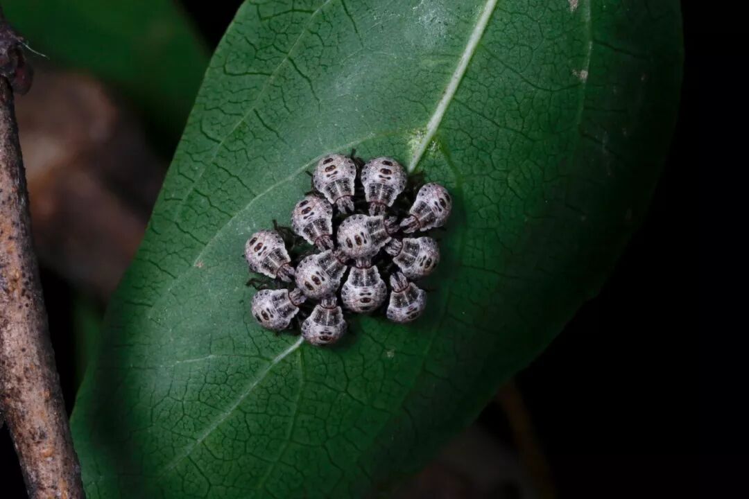 蝽科若虫常会在孵化后短暂群集。图片:翦翳翎