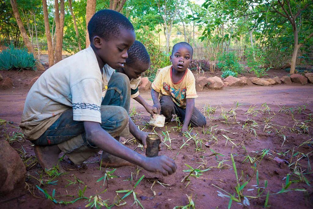 莫桑比克的小朋友们在地上捡“嘎嘣脆”的繁殖白蚁。图片:TimCowley / wikipedia