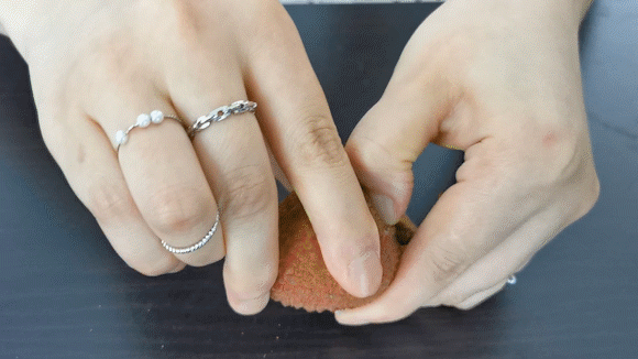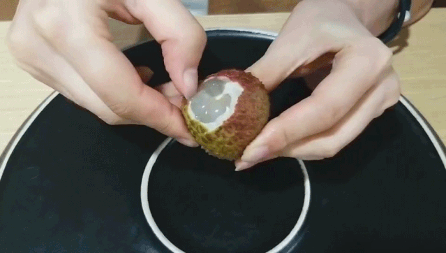 粗糙的果皮下,藏着大而饱满的“白玉”,闪着水光的果肉,我承认我对一颗荔枝心动了!