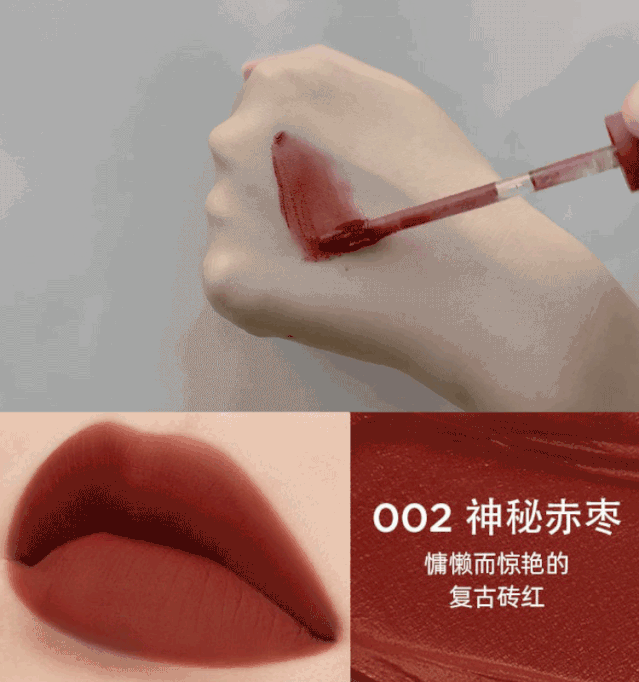 普通的哑光唇釉饱和度高,涂上鲜明艳丽不日常,全脸上下就瞅见一张嘴了!