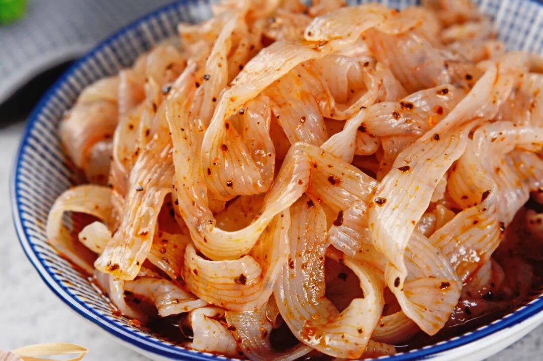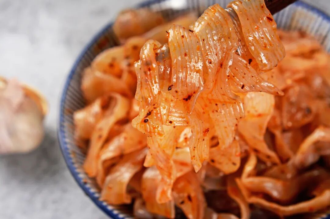 爽滑中带有一丝脆度,比普通凉皮更Q弹,韧性十足不易断。裹上满满的红油汤汁,沾上点点油泼辣子,吸溜吸溜进嘴,酸香麻辣带着脆爽在嘴里冲撞,简直滑进人心里。