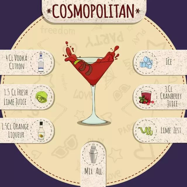 40ml伏特加,30ml蔓越莓汁,15ml青柠汁,15ml橙味力娇酒,冰块。