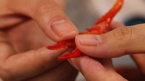 小龙虾的肉质是骗不了舌头的,市面上用冻虾做的小龙虾,入口松散,么得灵魂。想要如此弹弹弹,一定得是当季鲜虾。我们用的都是2020年鲜虾,并且在制作过程中加入了一个“冰镇”的步骤(将熟虾放入0℃的冰水中急速冰萃),这样的肉仿佛是从壳里蹦出来一样,肉质鲜甜又Q弹。