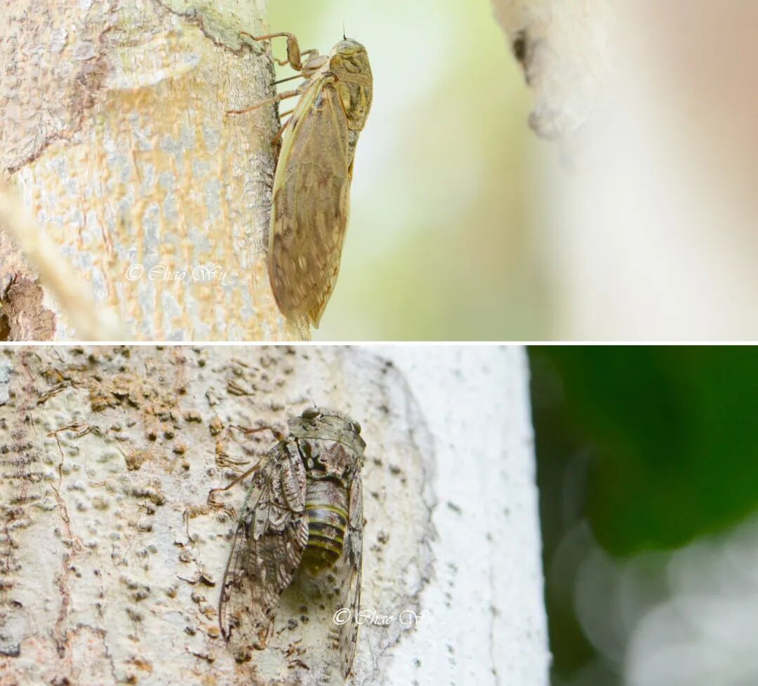 与蟪蛄近似的黄蟪蛄(上)和蛉蛄(下),它们在南方各地也比较常见。图片:吴小咖是个好孩子