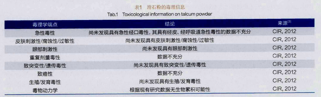 不含石棉或石棉纤维的滑石粉,被分类为致癌性3类(即对人的致癌性尚无法分类);