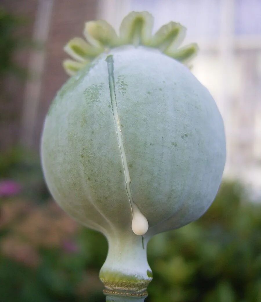 新鲜的“米口袋”,割开后流出的白色汁液可能被用于罪恶的贸易。图片:KGM007 / wikimedia