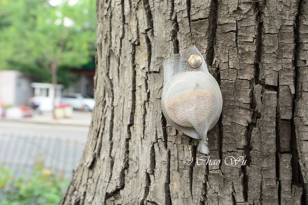 在城市的绿化树上,经常出现不少奇奇怪怪的东西,比如树干上的塑料“腰带”,挂在空中的三角形“小房子”,贴在树干上的蚕茧壳等等。这些玩意儿都是做什么用的呢?家里有小宝宝的话,大人就要被孩子问倒。这篇文章就来给大家介绍一下。