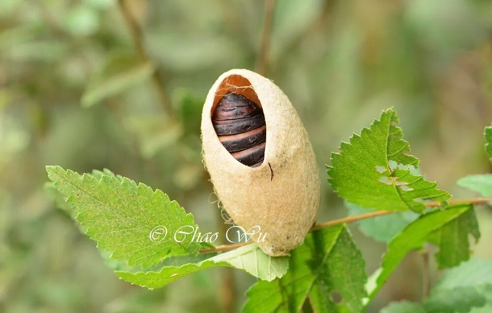 非常容易遇见的,在茧上开口的柞蚕茧(蛹)。图片:吴小咖是个好孩子