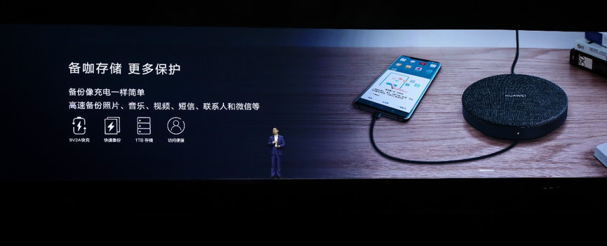 作为发布会的另一款新品,华为备咖存储可满足在充电的同时进行备份,解决人们对手机空间需求的问题。