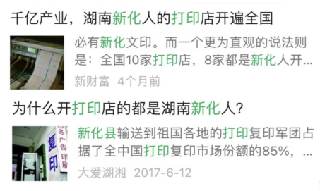 简单来说便是:当地曾经相对贫困的农业社会孕育了复杂的血缘、地缘脉络网,而贫困的生活又倒逼当地人积极外出创业,学习新式打印技术,并在二手打印设备上资源共享,这才有了今天我们看到的“八成打印店老板都来自新化”。