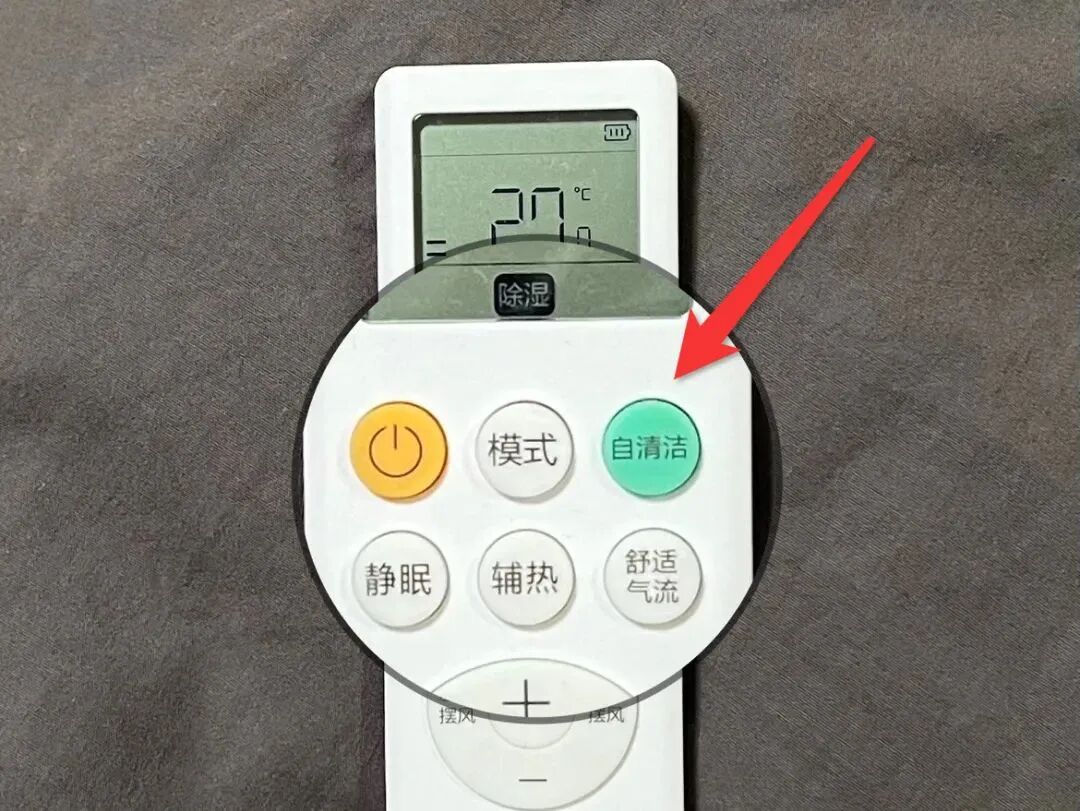 有的遥控器会有“自清洁”字样的按键,有的复杂一些,需要先按下“关机”键,再同时按下“灯光” +“ 辅热”键。
