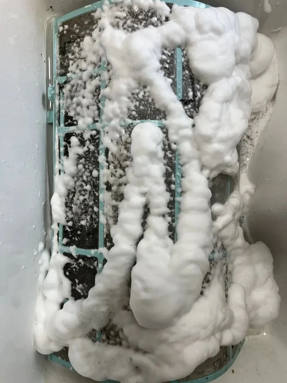 3. 清洗滤网,在滤网上喷洒空调清洗剂,静置 15 分钟;
