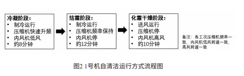 3)送风/制热化霜,化霜水冲洗散热片带走灰尘,污水排出,高温吹干残留水分。