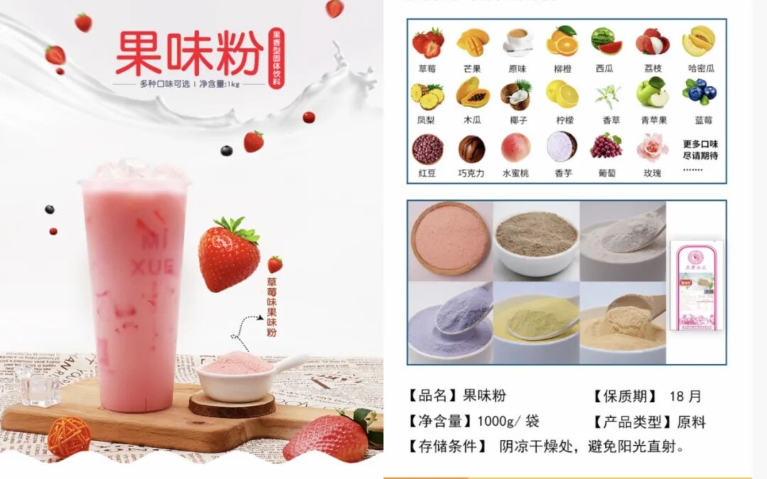 用水果直接泡水,没有什么味道 | 图片来自图虫创意那水果茶里的浓郁果味又是哪儿来的呢?合理推测是来自浓缩果汁/果汁浓浆/果蜜/果露,这类产品的配料表前几名,基本就是果葡糖浆+白砂糖。芒芒果茶、莓莓果茶、百香果果茶……之类,光靠真正的水果无法把水果风味拉满,也需要借助调配果酱/果浆/浓缩果汁的力量。果味粉直接加水和果葡糖浆,也能兑出一杯看起来是水果做的、喝起来也是水果味的水果饮料。以某款果味粉举例:这个果味粉配料表排名第一的就已经是葡萄糖了,根据推荐的制作方法,还要再加20克果葡糖浆,这样组合下来,比起奶茶的含糖量只高不低。而且,虽然果葡糖浆的甜度高,但它口感清爽,喝进嘴很难察觉摄入了很多糖。所以,就算你选了“不另外加糖”、“无糖”,代表的是没有再额外加入果葡糖浆或白砂糖,但作为基础风味原料的果汁、果浆里,本身就已经有很多糖了。之前老爸评测还发现了一个用0卡糖的水果茶里,也有13.5克糖。看了配料其实也就不奇怪了,就算真的用了0卡糖(赤藓糖醇等代糖),但是该加果浆/果酱/果汁还是要加,自然就会测出有糖了。除了果浆、果露,还有一类可以标“不另外加糖”的小料,也是“糖陷阱”的重灾区。能把一杯水变成一杯粥的所有配料:珍珠、椰果、蒟蒻、寒天、红豆、紫米、爆爆珠、QQ彩球、黑糖波波、桂花冻、波波脆、芋圆、波霸、血糯米、晶球、豆花、珍波椰、仙草、椰肉、咖啡冻、茶冻、Q弹脆珠珠、燃爆菌、马蹄爆爆珠、胶原弹力波波脆、双倍果肉、手捣芋头、奶冻、米麻薯、芝麻芋圆……里面都有糖。当然,我们也不能“谈糖就色变”,偶尔喝一点含糖饮料,也是一些人生乐趣的。只是,现在稍不注意就会摄入过量糖分,而摄入过多糖分带来的危害想必不用我再多说了吧?还是那句话:奶茶/水果茶好喝,但不要贪杯噢~